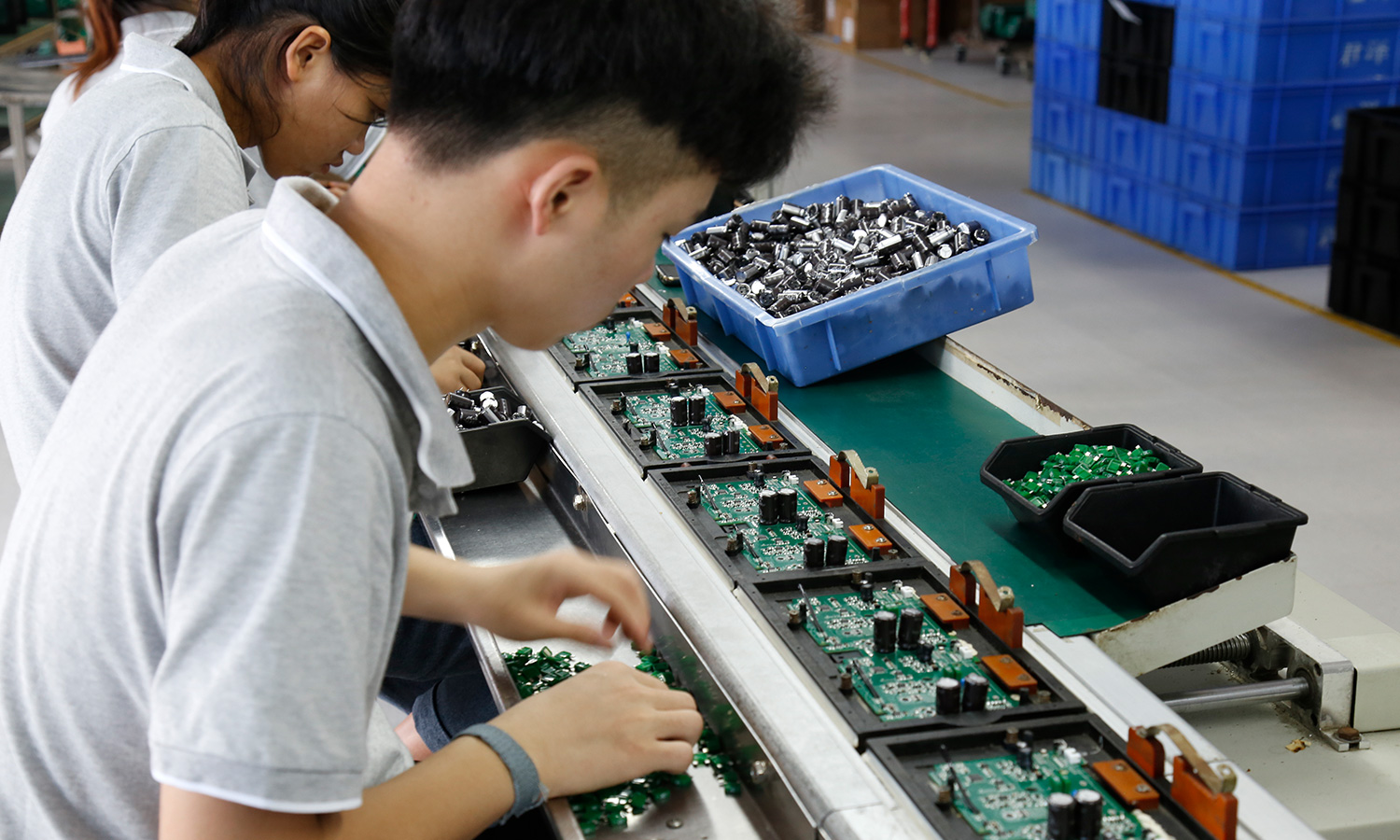 现有组装流水线2条现代化的生产线(可随时扩成4条),对太阳能控制器,逆变器,储能、工业降噪耳机、等工业产品组装经验丰富 ;能够生产绝大部分的数码电子产品,极强的综合生产能力,日产能达到1万PCS以上。防静电PVC空调车间,配备有老化房,测试房,成品测试隔音隔离房等,设备先进、完善,可进行各种产品镭雕、组装、老化、测试、包装等生产。